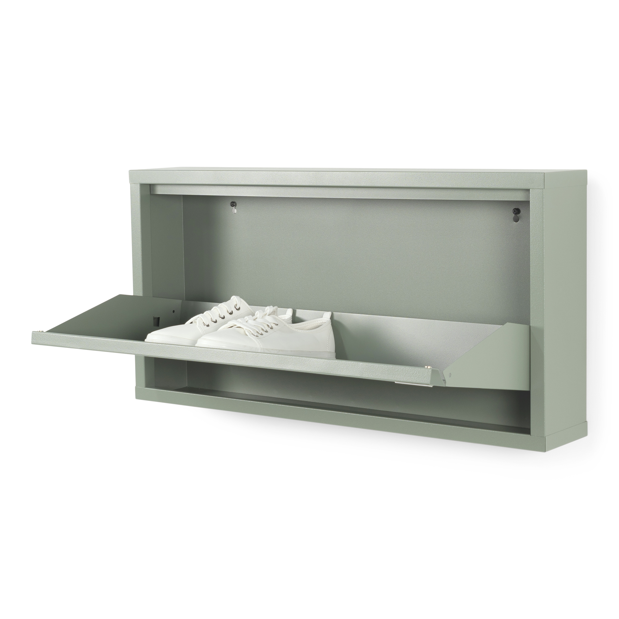 Mit seinem schlichten, flachen Design aus pulverbeschichtetem Stahl ist der Billy 1 eine stilvolle Antwort auf ein häufiges Problem: herumliegende Schuhe. Der multifunktionale Schuhschrank, der in verschiedenen Größen erhältlich ist, ist sowohl auf dem Boden als auch an der Wand ein praktischer Blickfang. Der Billy 1 bietet Platz für mindestens 3 Paar Schuhe. Diese stellt man mit dem Absatz nach hinten in den Schuhschrank.Unser Tipp: Hängen Sie mehrere Billy's neben- oder übereinander für einen spielerischen Effekt. Wenn Sie Ihre Schuhe nach unten stellen (wie in einem Schuhkarton), können Sie in der Regel 4 Paar Schuhe unterbringen!