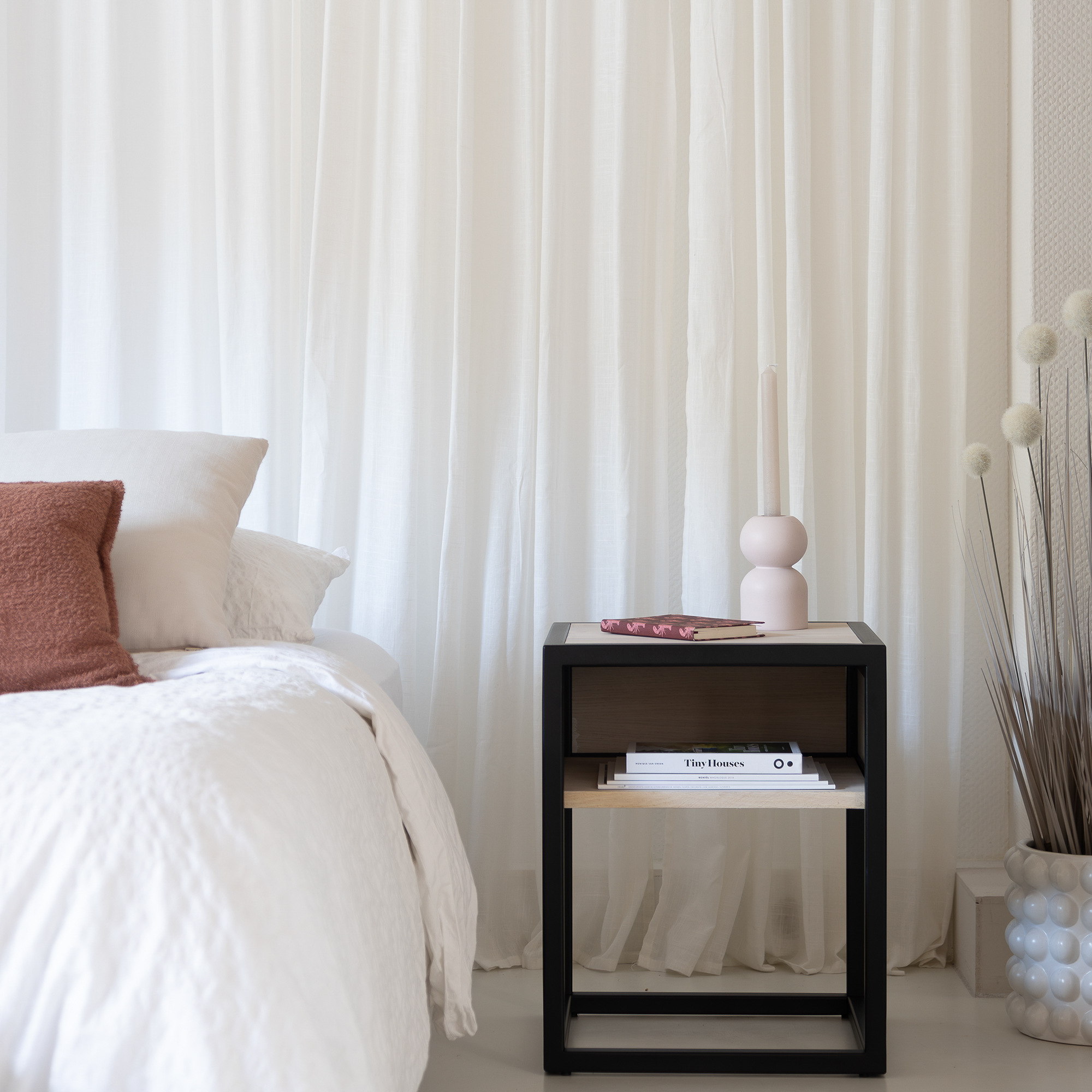 The Diva One-Nightstand bedside table is certainly not a 'one-night stand', this is a keeper! The strong, open frame in combination with the oak makes this bedside table look modern, strong and sturdy! Due to the various color options for this Diva bedside table there is a place for it in every bedroom.