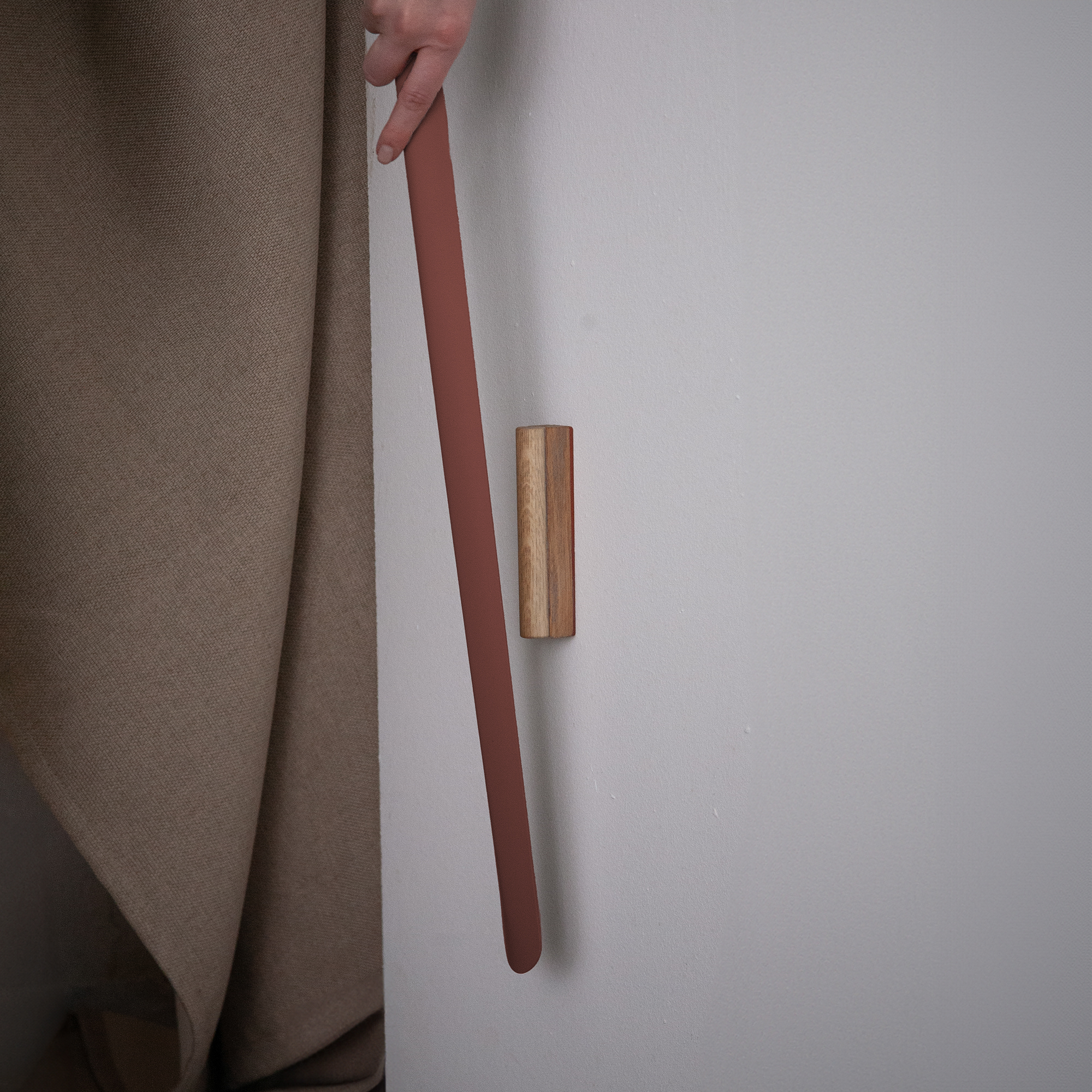 The DON shoehorn, part of the joint Spinder x BUDDE collection, is an exclusive design by BUDDE, a renowned design studio based in Germany.When a quotidian object is characterized by sculptural elegance – DON is a minimalist shoe horn with a slim silhouette and an intuitive usability.Designed for individuals, couples or families who value practicality as much as a refined design aesthetic. DON is crafted from highest-quality steel with a modern powder-coated matt finish, making the piece highly robust from head to toe. The handle of the 60cm-long shoe horn has been shaped to ergonomically fit into the hand with ease for a convenient user experience. DON facilitates a quick and gentle sliding of the foot into any favorite footwear. The product seamlessly fits onto a magnetic wood fixture to attach it to a wall. Thereby, it is accessible at any time or provides a refined sculptural quality while it rests on the wall. DON is a thoughtful, functional object – available in four contemporary color choices: silky taupe, dusty green, Tuscan Terra or a classic black.BUDDE was founded in 2019 and is led by Architect Johannes Budde and Meike Papenfuss. As a strong duo, Johannes Budde is the creative mind behind BUDDE, complemented by the business and brand expertise of Meike Papenfuss.