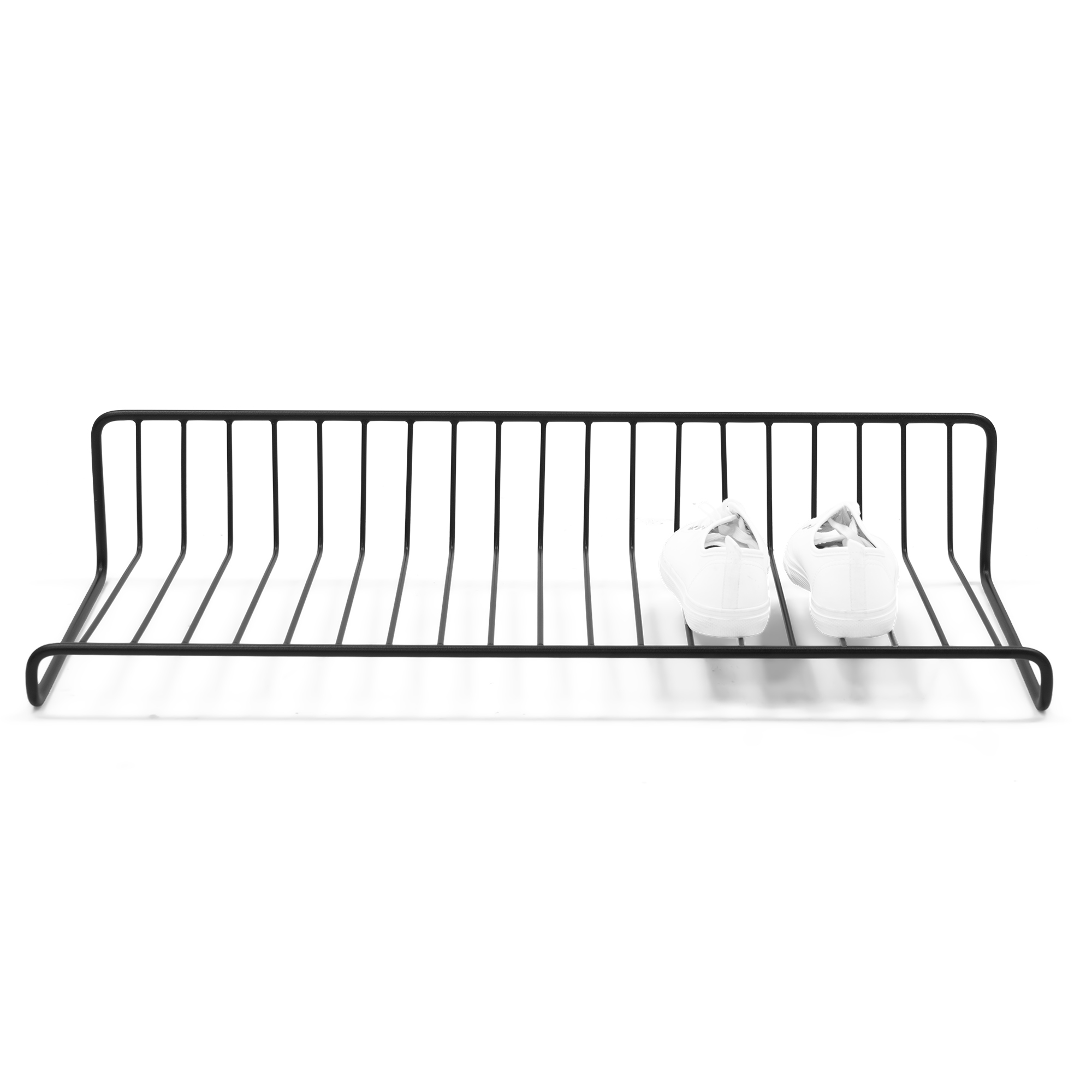 The FINO shoe rack combines functionality with a sleek, minimalist design. This open shelf provides ample space to store shoes in an organized and visible way, while at the same time being a stylish addition to your hallway or bedroom. Made of high-quality steel and finished with a black powder coating, it fits perfectly into modern and industrial interiors. The rack is available in different sizes, so you have the ideal solution for your space and shoe needs.