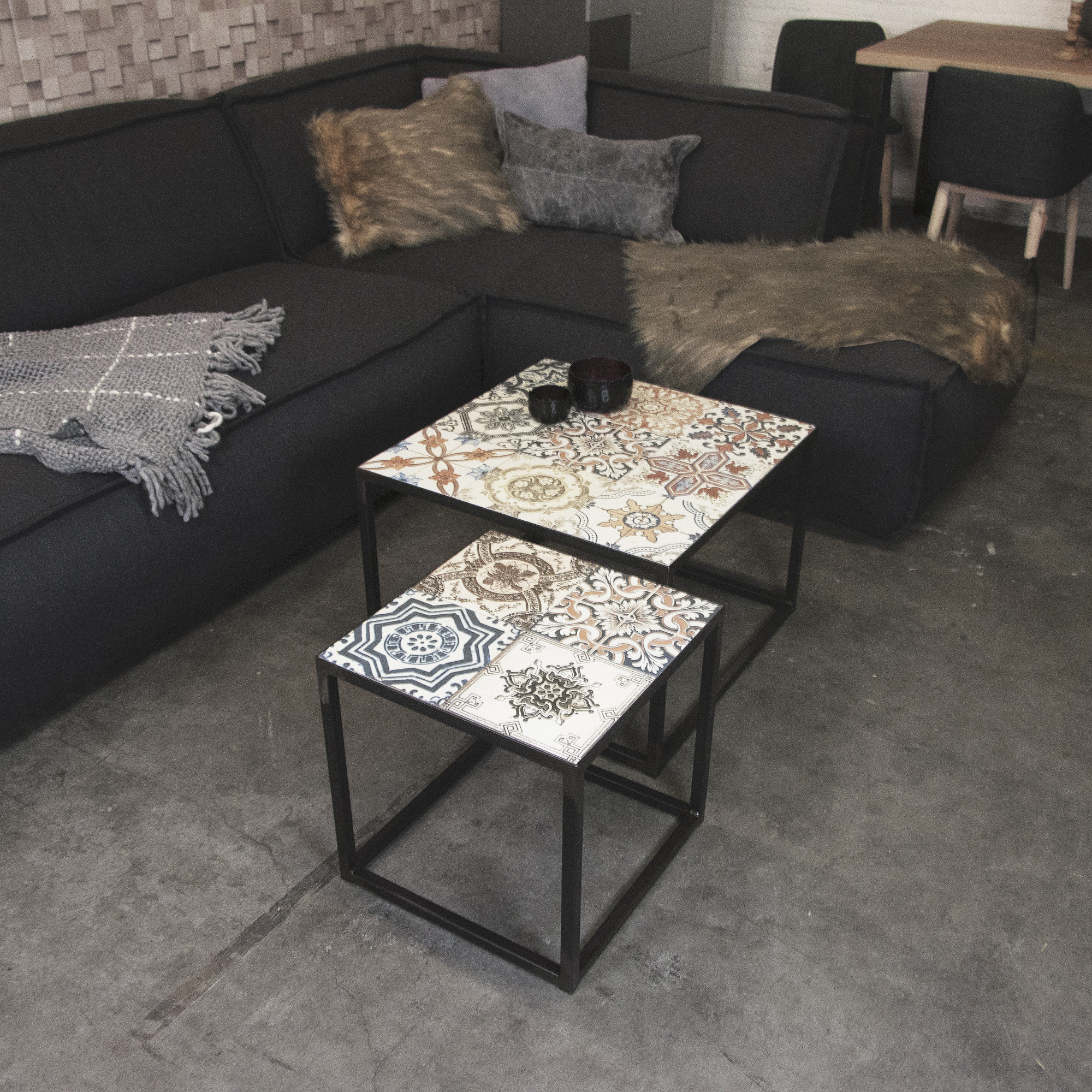 With the Ibiza side table, you immediately surround yourself in Mediterranean spheres. The combination of the Blacksmith steel and the cheerful ceramic tiles give this side table series a wonderful vibe. The Ibiza 60x60 is easy to combine with other products from this series.
