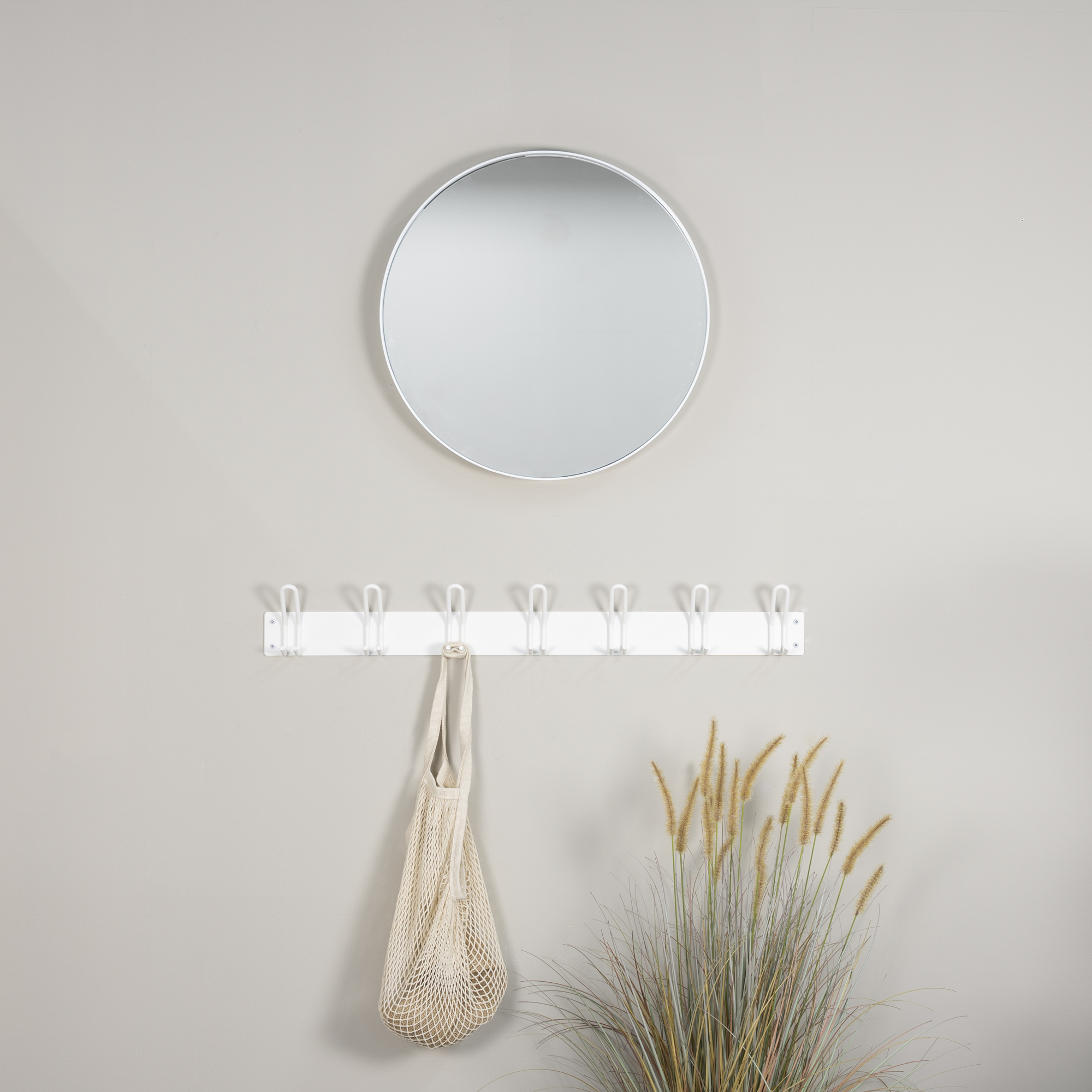 The Miles coat rack feels at home in any home. With its 21 hooks and shallow design, the coat rack is very functional. Even without coats, the Miles is a picture to behold. The Miles 7 is a coat rack from the Miles series. The Miles series consists of coat racks with 3, 5 and 7 hooks and is available in white, Dusty Green and Silky Taupe.