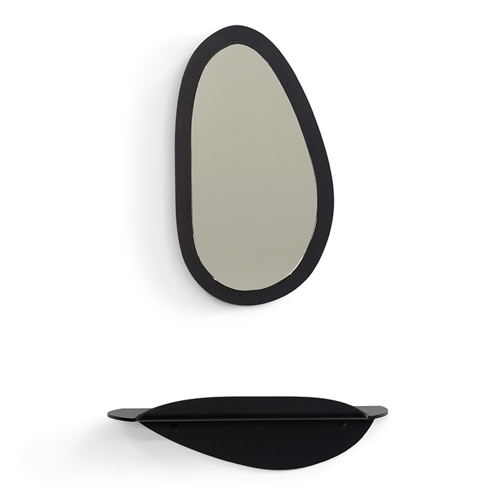 The Pipa Top Mirror from the Spinder x Eva van de Ven collection is an exclusive design by Eva van de Ven, known from the Dutch television series vtwonen.The Pipa Top Mirror is a stylish mirror whose compact size makes it very suitable for the hall, toilet or other small rooms. The mirror glass has a bronze colour, which gives the mirror a soft look.The mirror combines perfectly with the Pipa Bottom wall shelf. From now on, you will enter your home with a smile!The unique thing about the Pipa Top Mirror and the Pipa Bottom wall shelf is that they were created from the leftover material of the Tonda and Alto tables. The cut-outs seen in the tables are the basic material for this beautiful product set.Tip from Eva: hang the Pipa Bottom Wall Shelf playfully with the Pipa Top mirror for a beautiful whole.