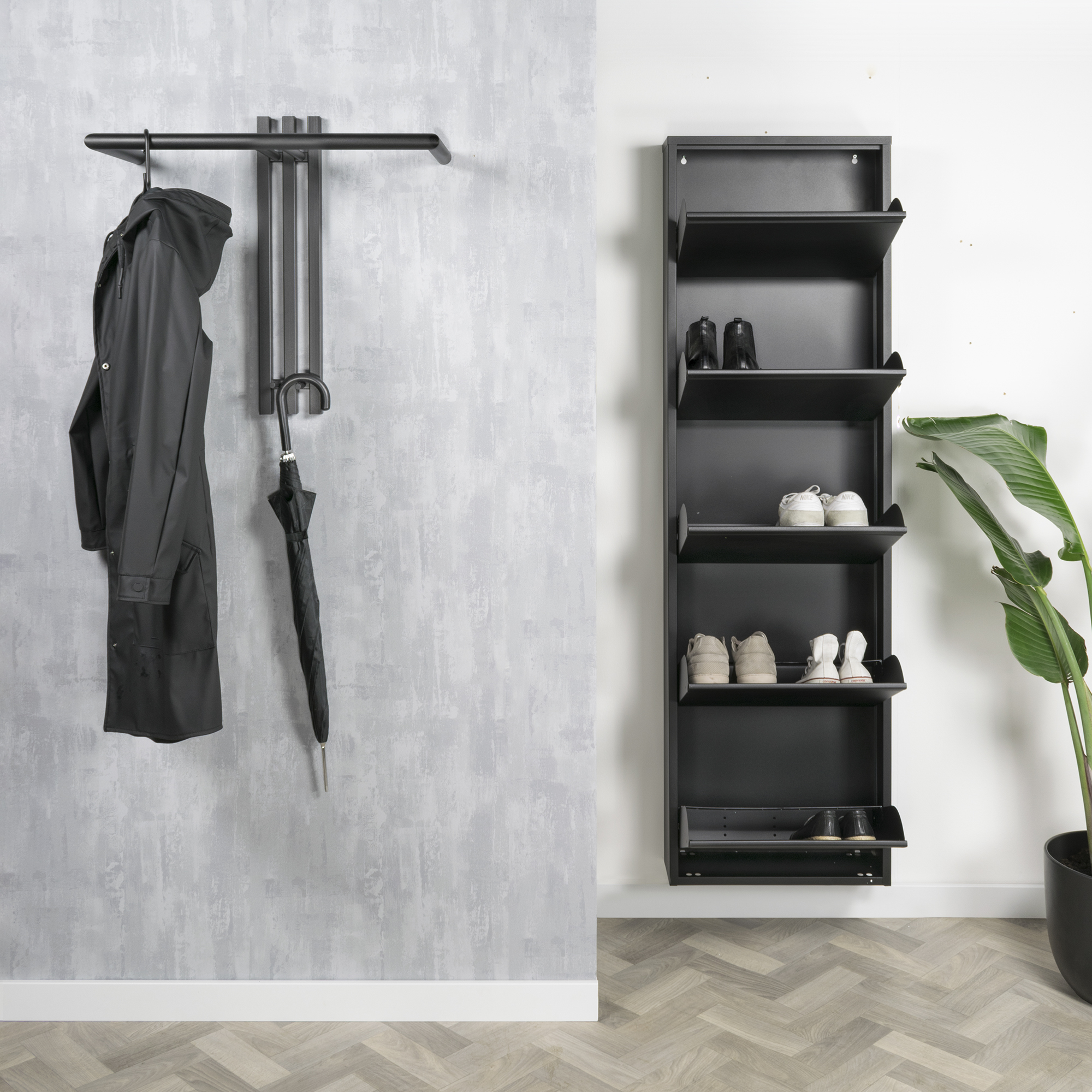 Stylish and simplistic is what this Senza coat rack radiates. The minimalist design makes this coat rack a real eye-catcher in your hallway. In addition, the rod offers plenty of room for a large number of clothes hangers to hang all your coats on.