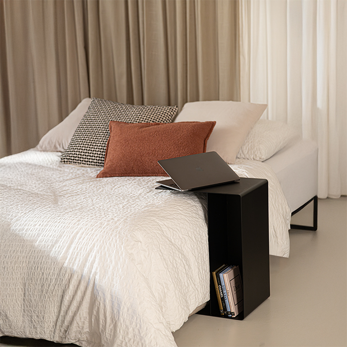 The Slide Low is a contemporary and elegant table that fits seamlessly into almost any living room. This versatile side table is perfect as a stylish coffee table, but also serves as a convenient laptop table for your sofa. The Slide Low can be placed either vertically or horizontally, depending on your preference. The convenient shelf offers space for books, magazines, or decorative items, so your favorite belongings are always within reach. Combining functionality with aesthetics, the Slide Low is a unique addition to any interior!